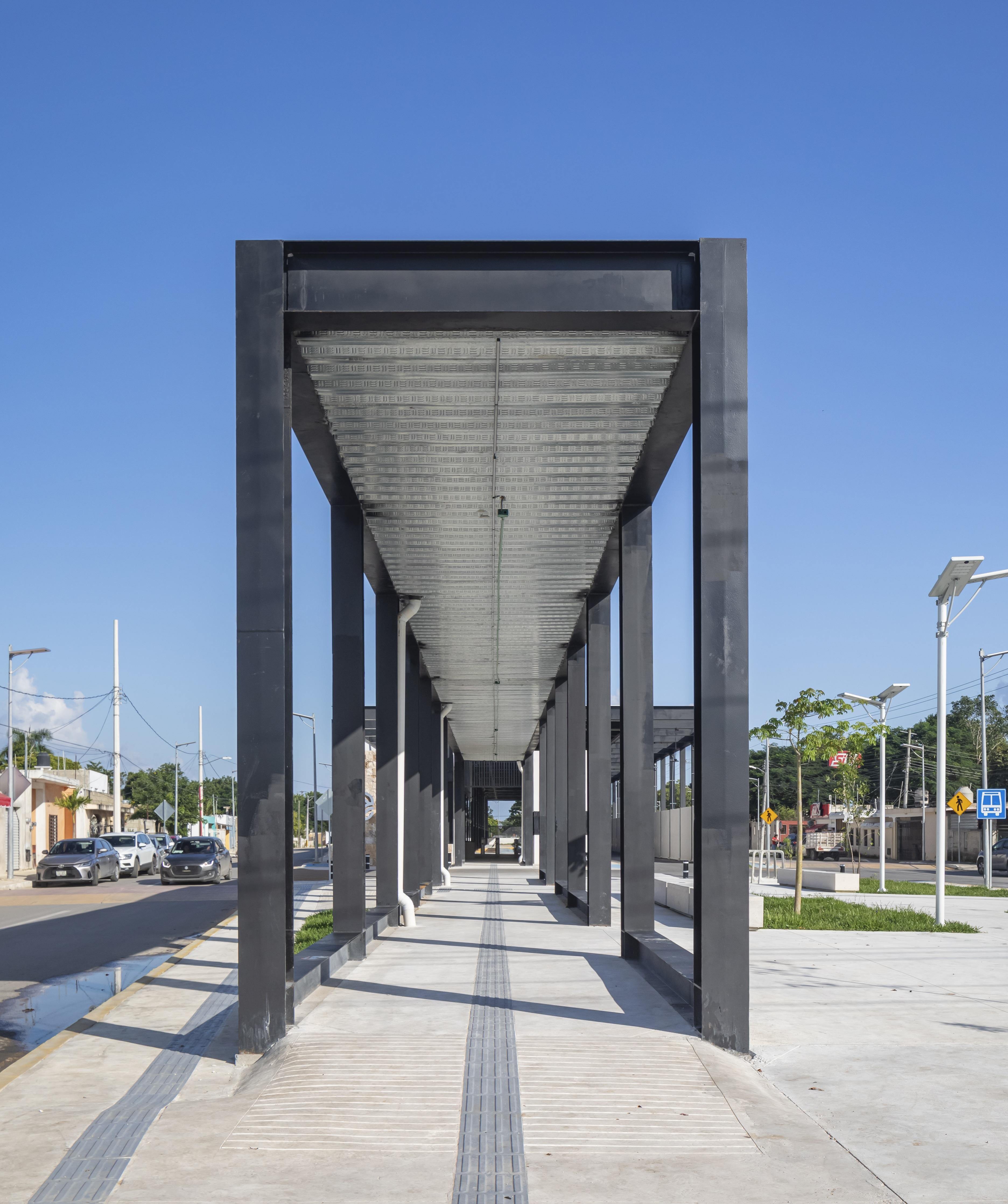 Arquitectónicamente, el proyecto se concibe como un espacio abierto y funcional que dialoga con su entorno urbano. La estructura guía el movimiento de los usuarios, genera áreas de sombra y confort climático, y establece un ritmo visual que acompaña la dinámica del sitio. Más allá de su función operativa, el CETRAM Oriente se integra como un elemento urbano que aporta identidad, mejora la calidad del espacio público y refuerza la conectividad entre la ciudad y su región.